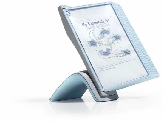Zichtpanelensysteem met antibacteri?le bestanddelen. De hoogwaardige voet en de zichtpanelen zijn voorzien van zilverionen die de groei van micro-organismen voorkomen. De zichtpanelen openen langs 2 zijden, zo kunt u gemakkelijk de bladeren vervangen. Tafelmodule, inclusief 10 SHERPA BACT-O-CLEAN A4 zichtpanelen in lichtblauw. HET VOLLEDIGE SYSTEEM IS ANTIBACTERIEEL.