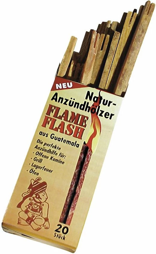 Het aansteekhout Flame-Flash is afkomstig uit de bossen van Baja Verapaz en bestaat uit sparrenhout dat de tussen 70 – 80% van het hars van de boom bevat. Deze bossen staan onder toezicht van de het nationaal instituut voor bosbeheer (INAB) dat een ecologisch beheer van het bosbestand garandeert. Het principe van Flame-Flash is reeds in de oertijden van de Maya’s in Guatemala voor het dagelijkse gebruik toegepast. Ideaal voor open haard, grill, kampvuur en kachels.