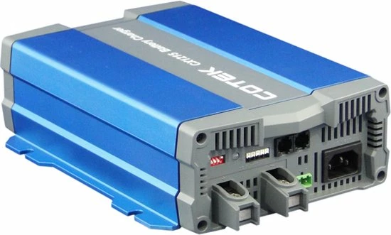 De Cotek CX1215 batterijlader gebruikt een 3-traps laadcyclus om loodzuur-, Li-ion-, gel- en AGM-type batterijen veilig en betrouwbaar op te laden. De lader heeft een ingebouwde beveiliging tegen kortsluiting, overspanning, oververhitting en uitbranden. De CX1215-oplader kan communicatie op afstand bieden via een beschikbare afstandsbediening of een RS-232-verbinding.