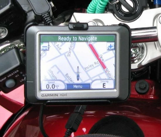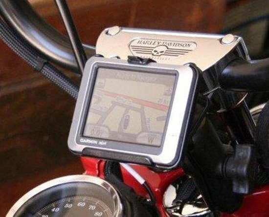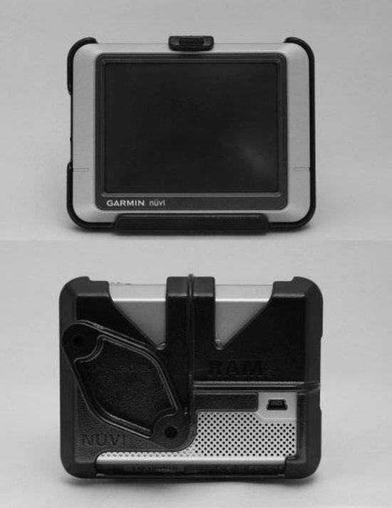 Composiet maatwerk houder voor Garmin GPS, voor montage op RAM Mount componenten. Knoppen en ingangen zijn bereikbaar.