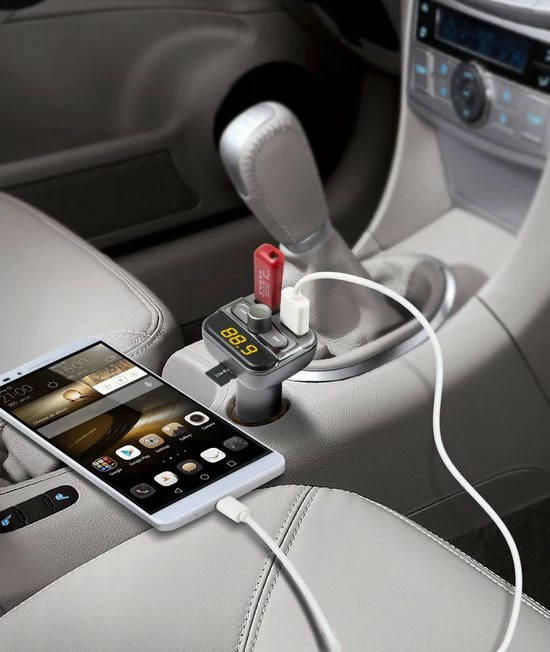 ? Hansfree bellen via draadloze overdracht van telefoongesprekken vanaf uw smartphone via Bluetooth op de FM-radio van uw voertuig