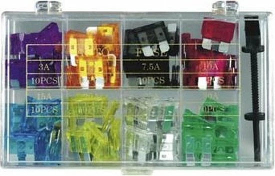 Levering in assortiment met de volgende types: 5 A, 7,5 A, 10 A, 15 A, 20 A, 25 A, 30 A. Incl. zekeringtrekker voor het verwijderen van defecte zekeringen.