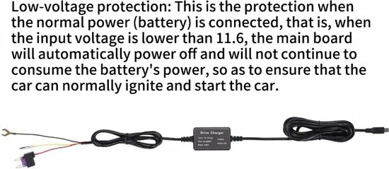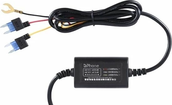 Lage Voltagebescherming: Meerdere beveiligingsbescherming – Met laagspanningsbeveiliging zal de DrPhone hardwire-kit automatisch de stroom uitschakelen na 60 seconden wanneer de spanning lager is dan 11,6 V(+-0,2). Niet van toepassing op vrachtwagens met een spanning boven 24V. Meer beveiligingsbescherming zoals overstroom, kortsluiting, omgekeerde verbinding en oververhitting.