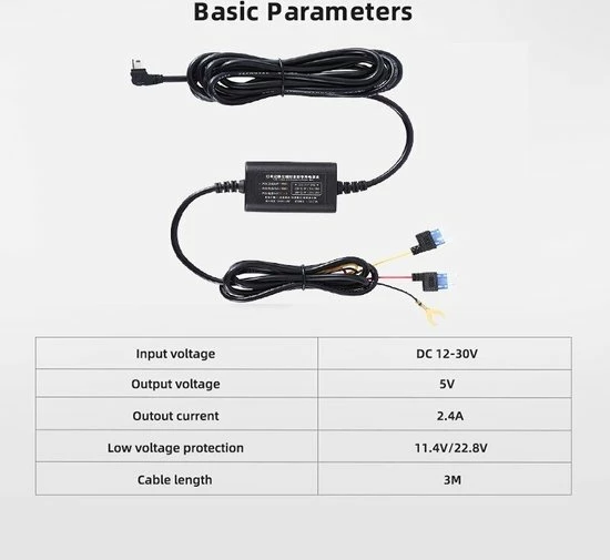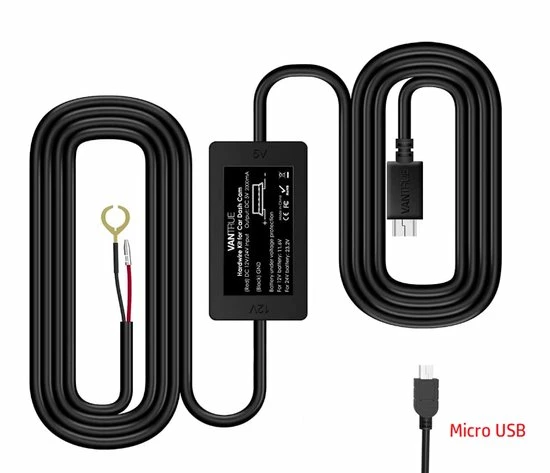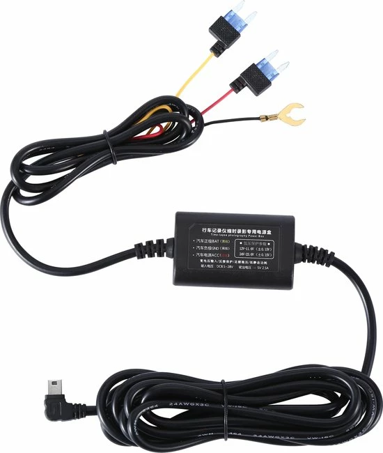 Brede Capaciteit: 3m kabelset voor dash cam of ander apparaat aangedreven door Micro-USB -poort, 5V/2A stabiele output, spanningsingang ondersteunt van 12V-24V. Compatibel met alle dashcams met Mini USB ingang.
