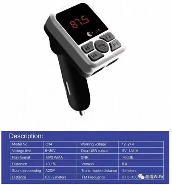 Deze auto FM transmitter met MP3 functie maakt gebruik van Bluetooth 5.0 en beschikt over een ingebouwde premium kwaliteit MP3/WMA decoder chip waardoor je draadloos kunt genieten van glashelder geluid.