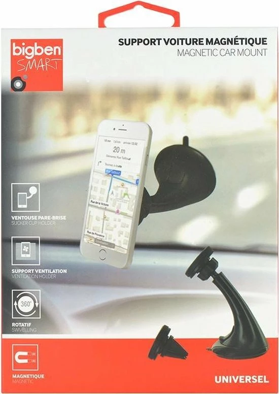Bigben Interactive GNETCARHOLDER. Type mobiele apparatuur: Mobiele telefoon/Smartphone, Correct gebruik: Auto, Soort: Passieve houder. Breedte verpakking: 85 mm, Diepte verpakking: 140 mm, Hoogte verpakking: 200 mm. Breedte pallet: 80 cm, Lengte pallet: 120 cm, Hoogte pallet: 180 cm