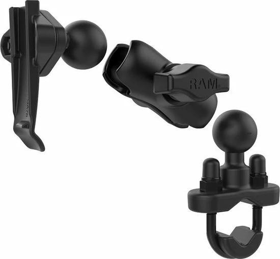 Deze complete Garmin Spline clip set is uitgerust met een B-kogel RAM-B-238U, RAM-B-201U-A korte (6 cm) aluminium klemarm en RAM-B-231ZU U-beugel voor ronde stangen en sturen.