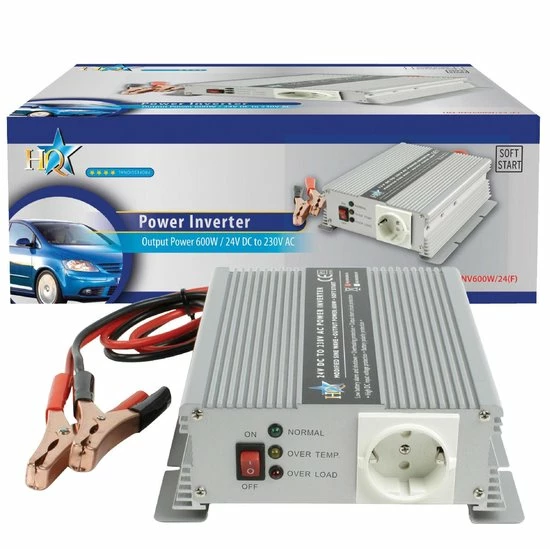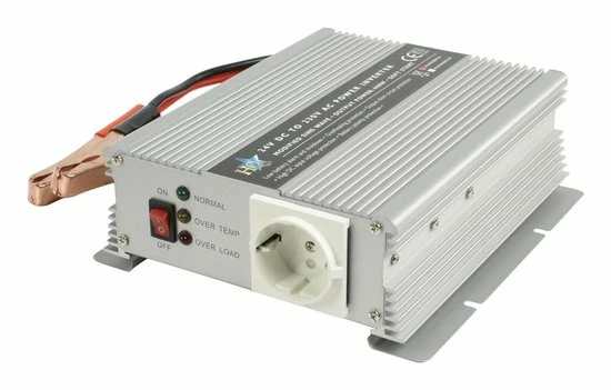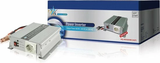 Deze omvormer is aan te sluiten op de 24V accu van auto of boot en vormt de 24V DC om naar 230V AC. Op deze manier is overal waar gewenst 230V apparatuur aan te sluiten! Deze omvormer kan een extra hoog piek uitgangsvermogen leveren.